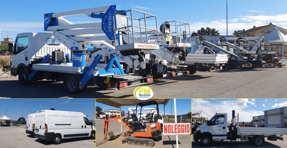 Da PM Noleggi troverai inoltre a noleggio furgoni, camion ribaltabile, camion gru, mini escavatore e manitou. Disponiamo anche di un’ ampia gamma di attrezzature a noleggio per l’edilizia come: tagliacemento, carotatrice, martelli demolitori, piastra vibrante, gruppi elettrogeni, e altro ancora.
